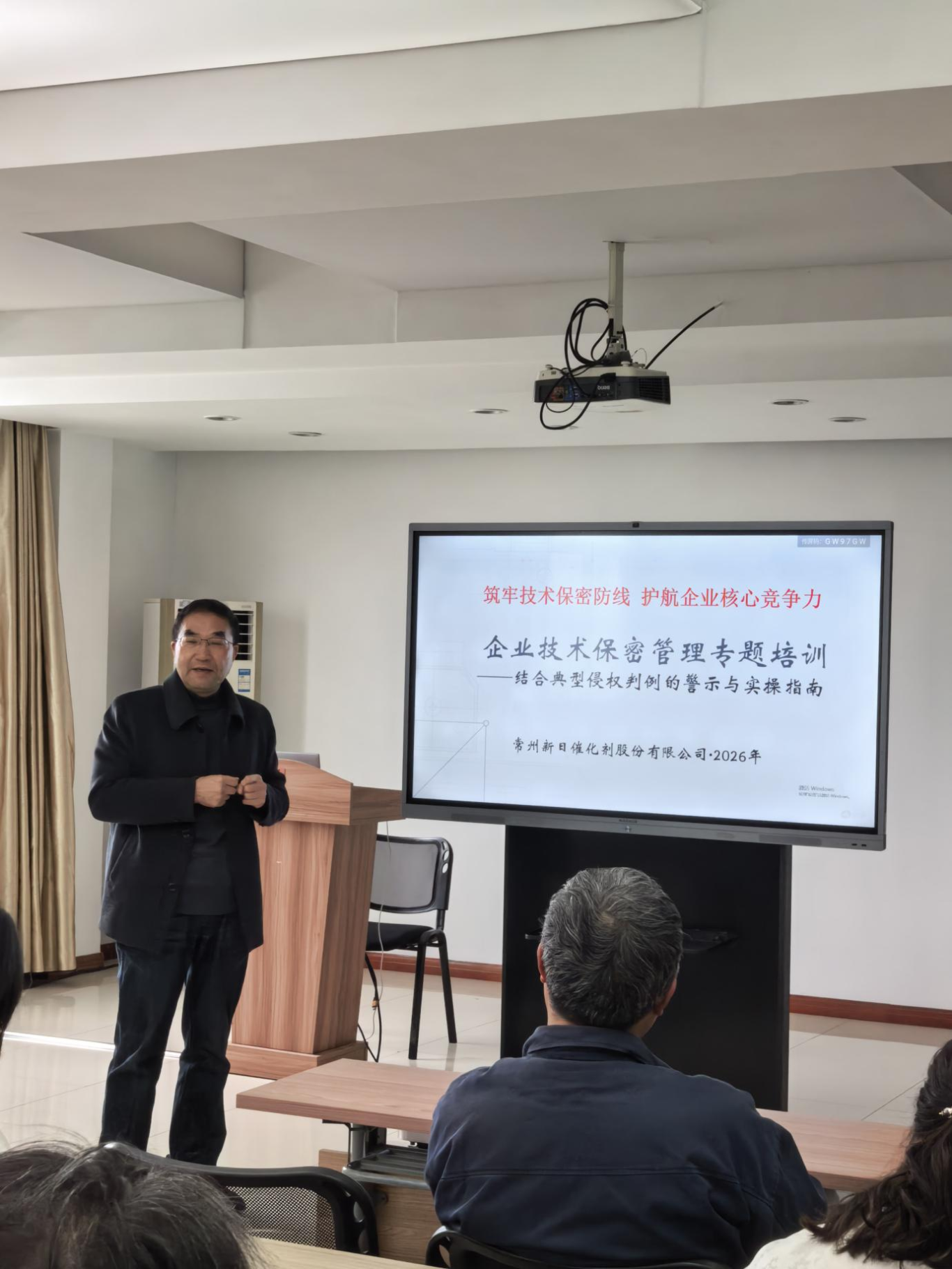 为强化企业技术秘密保护,提升核心竞争力,规范全员保密行为,2026 年 3 月 3 日下午,常州新日催化剂股份有限公司组织开展企业技术保密管理专题培训。本次培训由公司法律顾问唐洪保律师主讲,公司班组长以上管理干部及技术骨干共 31 人参加。